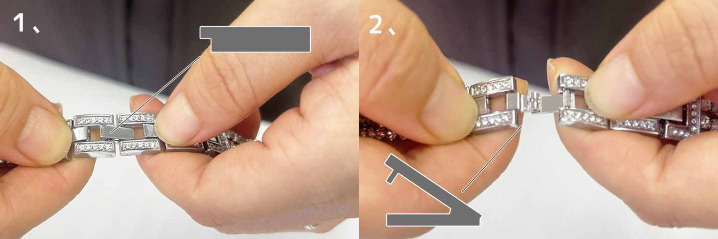*シリコンバンドなど一部のバンドは、材質の特性上「カチッ」と音がしない場合がございます。スライドを何度か往復して固定されている事を確認して下さい。