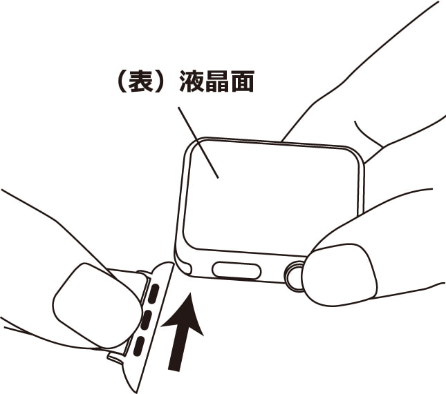 1、バンドのアダプターの(表)と(裏)を確認してスライドさせながら装着します。