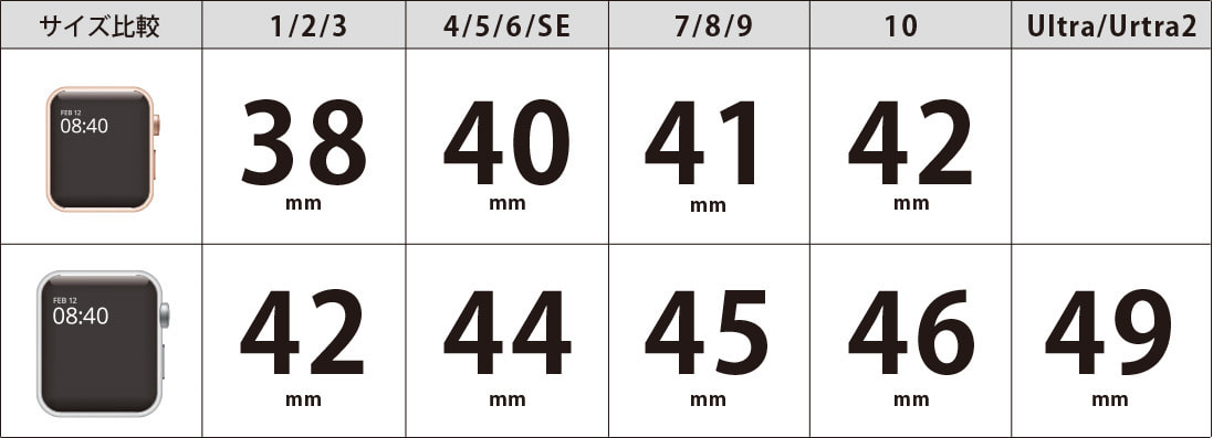 カバーやバンドご購入の際は、必ずサイズをご確認ください。